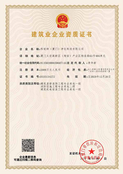 科銳特2009年開(kāi)始扎根于凈化行業(yè),2013年成立科銳特(廈門)凈化科技有限公司,多年來(lái)專注做好一件事-智慧美學(xué)潔凈室集成方案提供商,現(xiàn)擁有凈化系統(tǒng)工程設(shè)計(jì)安裝貳級(jí)資質(zhì),裝修裝飾工程專業(yè)承包貳級(jí)資質(zhì),建筑機(jī)電安裝工程專業(yè)承包壹級(jí)資質(zhì),消防設(shè)施工程專業(yè)承包貳級(jí)資質(zhì),工程設(shè)計(jì)專項(xiàng)乙級(jí)資質(zhì),智慧云潔凈室系統(tǒng)發(fā)明專利,已通過(guò)ISO9001、14001、45001及GB-T50430潔凈室體系認(rèn)證,是業(yè)內(nèi)頗具性價(jià)比智慧美學(xué)潔凈室集成方案提供商。